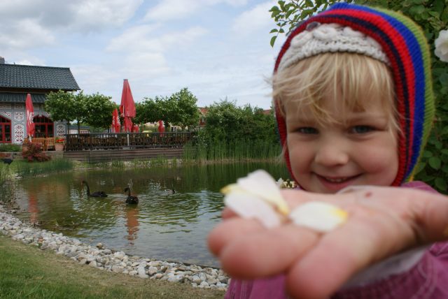 Najmladšia účastníčka zájazdu v ružovej záhrade